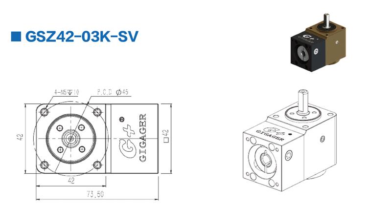 GIGAGER Dik Açılı Redüktörler servo motor için 42mm dişli oranı 1: 3 çerçeve boyutunda GSZ42-03K-SV model numarası. GIGAGER Dik Açılı Redüktörler ayrıca hareket kontrolü uygulamaları için servo motor redüktörü için özel olarak tasarlanmış 90 derece redüktörler veya direksiyon redüktörü olarak da adlandırılır. GIGAGER dik açı düşürücü, 12 Nm'den 300 Nm'ye kadar geniş bir çıktı torku, 0,5 Arc min içinde düşük Boşluk ve kompakt tasarım özelliğine sahiptir.